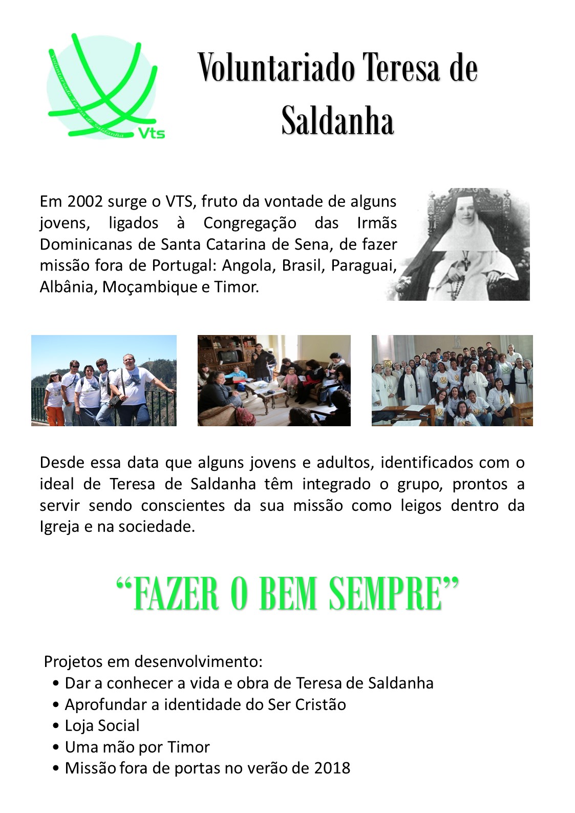 No dia … A minha experiência no encontro nacional do VTS foi simplesmente incrível. Não sabia o que esperar e nem que tipo de grupo teríamos. Encontrei alí uma verdadeira família com tudo o que uma verdadeira família tem: Pais, filhos, irmãos, avós, todos estes tipos de realidades. Encontrei também pessoas de diversos países e culturas. Lá pude ter momentos de encontro e viver a minha fé de uma forma diferente. No meio das atividades, os barulhos das crianças, a nossa preocupação com elas e os imprevistos permitiram-me ter um encontro com Deus na forma que ele verdadeiramente é: comunidade. Certamente esta foi uma experiência inesquecível onde pude conhecer novos VTS e novas formas de rezar. Se foi uma forma de conhecer novos Vts também aproximei a minha relação daqueles que já conhecia. O encontro do VTS foi onde consegui parar e aprofundar a a minha fé. Venham mais encontros. Ricardo (VTS AVEIRO)